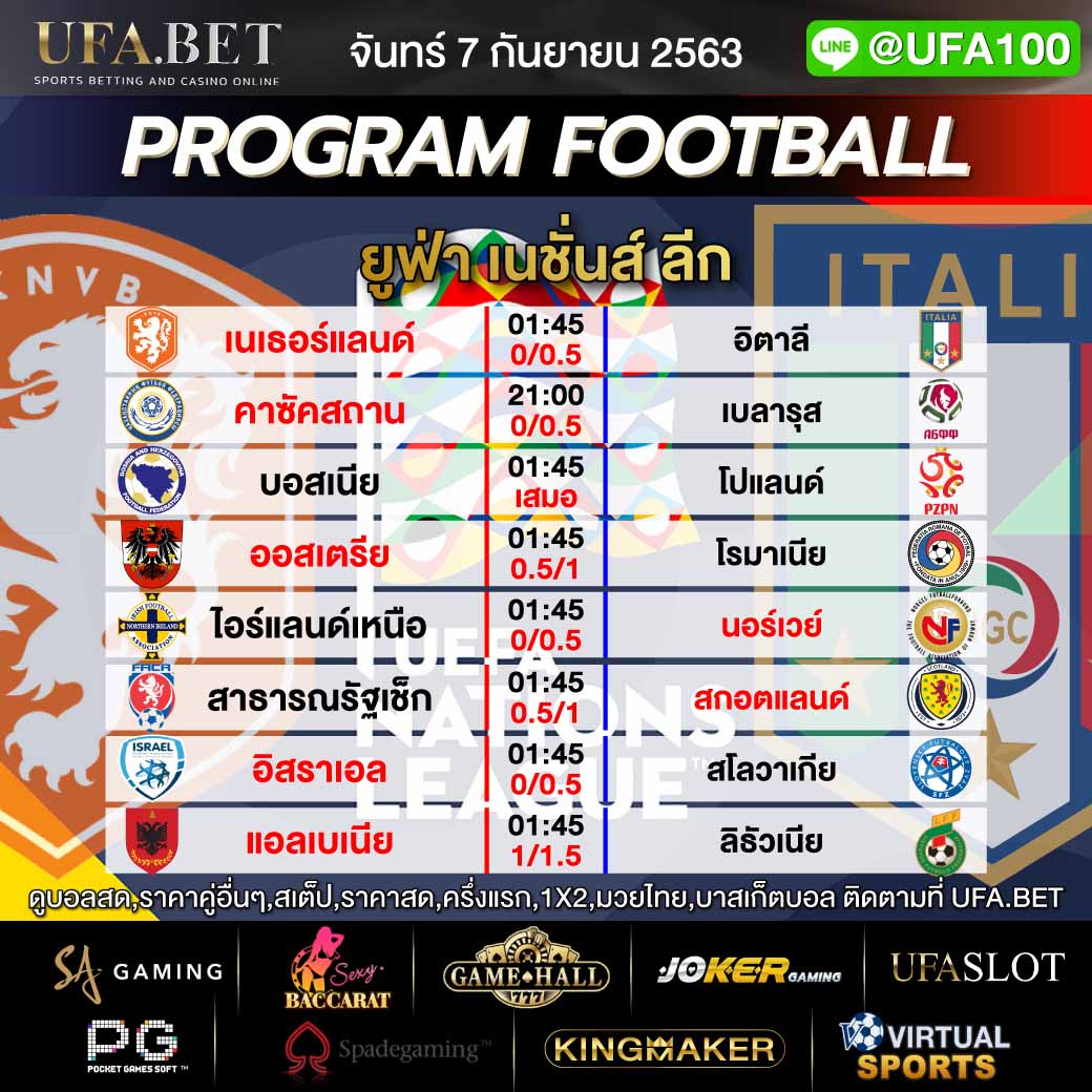 ราคาบอล เว็บแทงบอล UFABET ยูฟ่า เนชั่นส์ ลีก น้ำ 4 ตังค์ คอม 0.5% ดูบอลสดฟรี